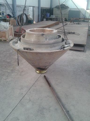 2014-08-25客戶HP500圓錐破碎機動錐體自行更換球頭時,由于安裝不到位,導致無法運行,運到我公司維修。由我司技術人員拆除球頭,重新安裝成功。